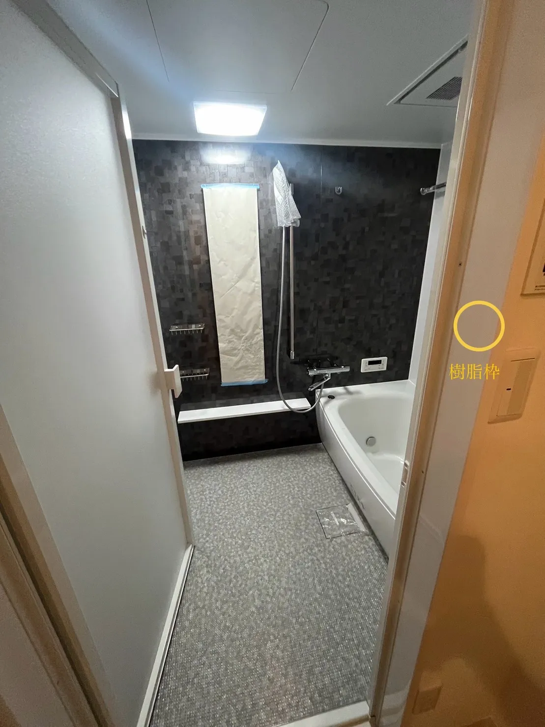 お見積にも樹脂枠と記載されている事が多いですが、従来の木材は水を含んでしまったり、カビが生えてしまって悪くなるケースが殆どで樹脂枠に交換するとその様なお悩みは完全解消し、長年使用可能となりますd( ̄  ̄)