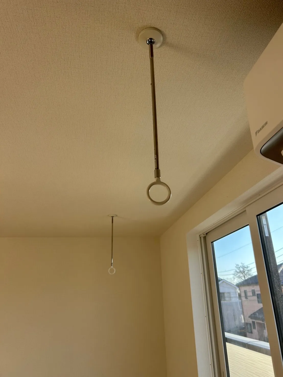 内部物干しは下地の位置に左右されますが、天井から脱着可能で外した時は目立たない仕様となっており、物干し竿も伸縮式で収納に便利な商品です!!