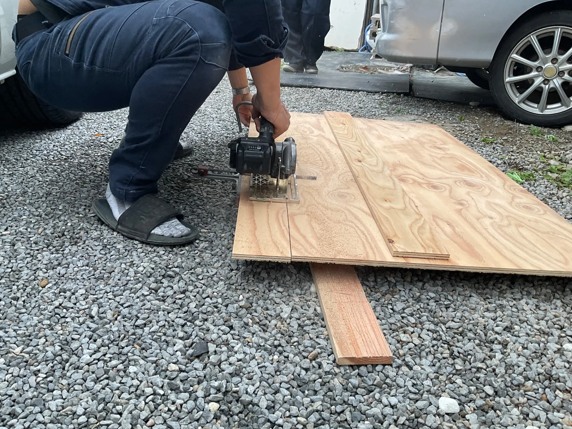 例えばL字になっている定規は材木を90°にピッタリカットする定規で、長い材木の厚みや幅を割く時も定規があって通称サキジョウギと言いますが、コンパネ等のカットにも有効的でかなり重宝しているアクセサリーですd( ̄  ̄)