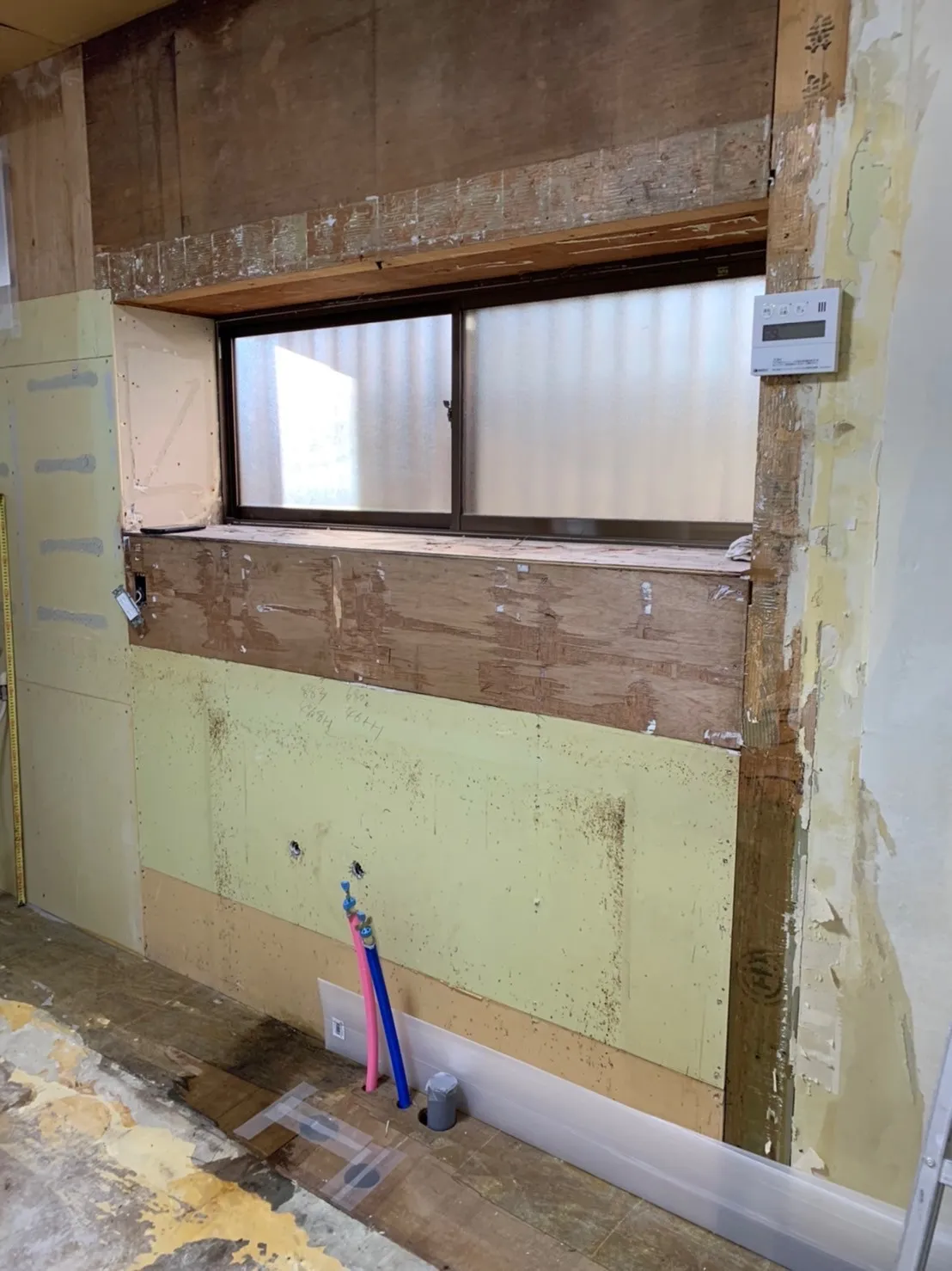 キッチン交換の際は背面下地が木下地で有れば交換をする事なく進められますが、大体ボードになっている事が多く取り替えております。
